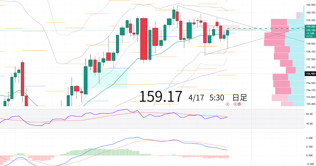 上値:159.2後半〜159.8、特に160円弱に売り玉厚め
