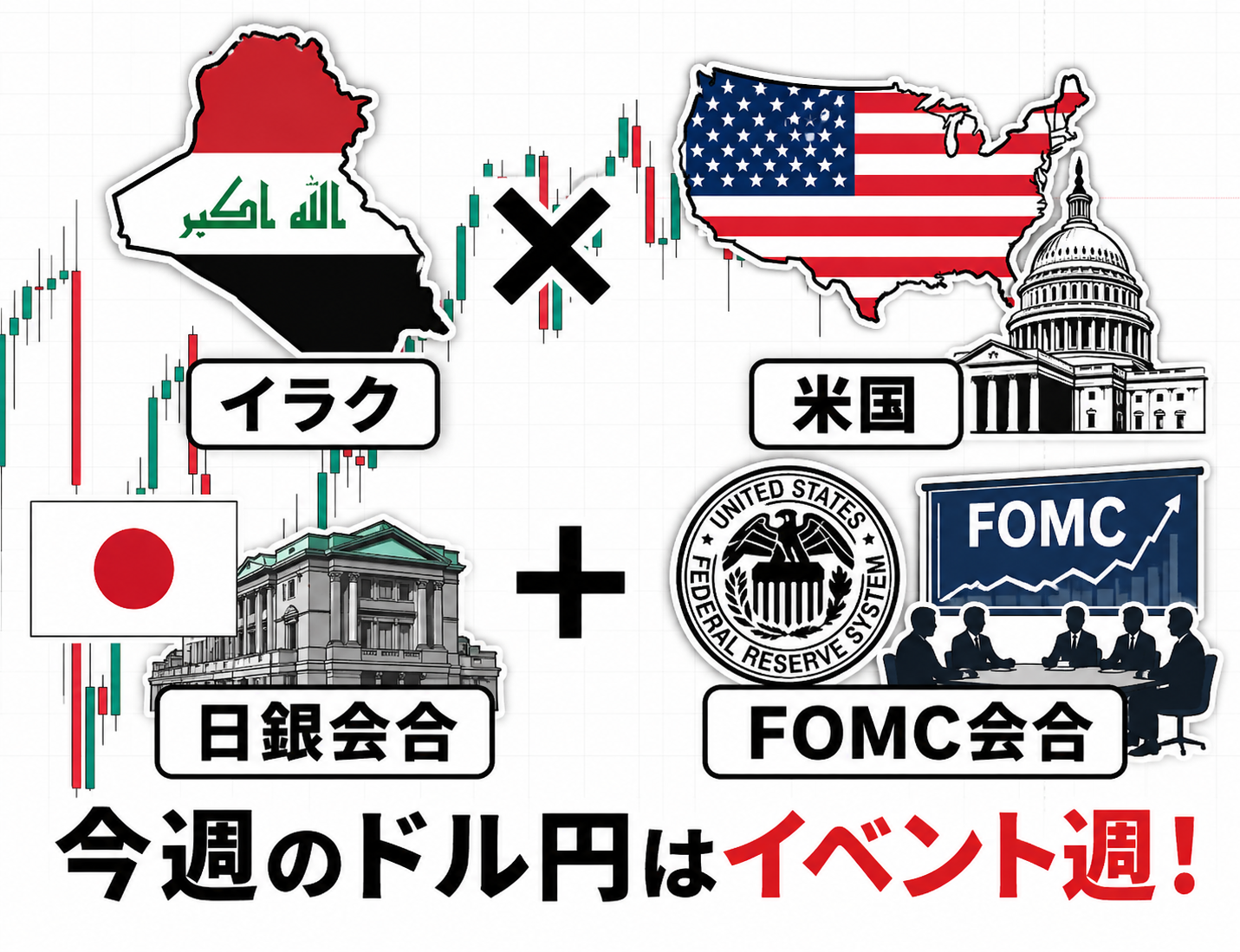 今週は日銀会合やFOMC、米インフレ指標など重要イベントを控えていることから、 値動きは限定的となると考えられます。